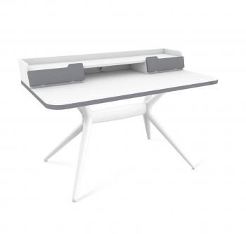 Сдержанный стиль столешницы идеально сочетается с мебелью в современном стиле. На рабочей поверхности расположены два вместительных выдвижных ящика высотой 165 мм и шириной 318 мм для хранения разных вещей. Удобная ниша между ящиками на столешнице подходит для ноутбука. Столешница оборудована системой кабель-менеджмента. В заднем бортике имеется отверстие для проводов, что позволяет удобно расположить зарядку для ноутбука или технические кабели компьютера.