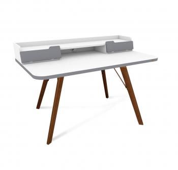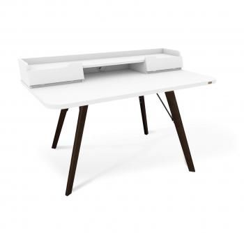 Сдержанный стиль столешницы идеально сочетается с мебелью в современном стиле. На рабочей поверхности расположены два вместительных выдвижных ящика высотой 165 мм и шириной 318 мм для хранения разных вещей. Удобная ниша между ящиками на столешнице подходит для ноутбука. Столешница оборудована системой кабель-менеджмента. В заднем бортике имеется отверстие для проводов, что позволяет удобно расположить зарядку для ноутбука или технические кабели компьютера.