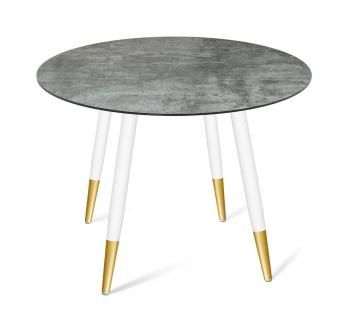 Столешница из HPL пластика смотрится изящно и невесомо, поскольку имеет толщину 12 мм. Рисунок текстуры на поверхности столешницы визуально неотличим от натурального камня. Оригинальную нотку придает золотое напыление в нижней части опоры. Четкое разделение белого и золотого прекрасно гармонируют со столешницами Sheffilton и каркасом стула в аналогичном стиле SHT-S85-1 белый муар/золото.
