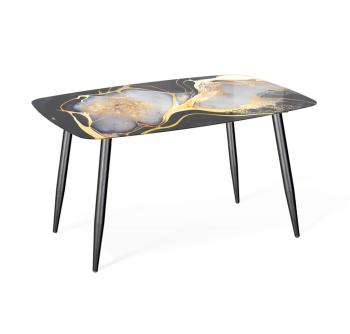 Столешница выполнена из закаленного стекла с ультрафиолетовой печатью. Одним из главных преимуществ закаленного стекла является его стойкость к высоким температурам, вибрационным нагрузкам, ударам и царапинам. Также стекло обладает высокой ударной вязкостью – энергия от столкновения с бьющим предметом распределяется относительно продолжительное время (по сравнению с обычным стеклом), что приводит к разрушению на очень мелкие осколки. Стекло закреплено на МДФ с отступом 50 мм.