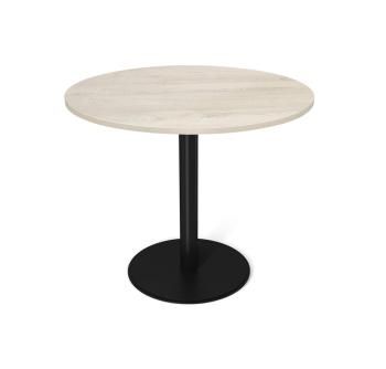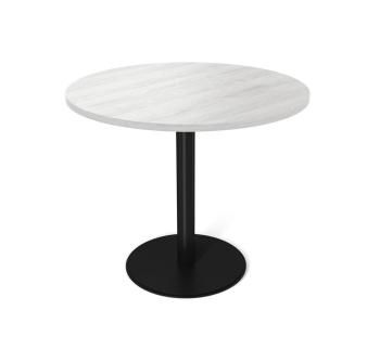 Надежная металлическая опора окрашена порошковой краской, устойчивой к механическому воздействию. Жесткость и прочность обеспечивается металлической трубой диаметром 76 мм, из которой выполнена стойка. Крепление к столешнице выполнено из металлического листа, толщиной 5 мм. Внизу лежит утяжеленное основание в форме круга.