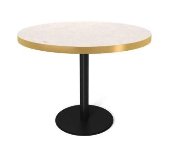 Столешница с покрытием HPL пластика и золотым кантом по периметру смотрится изящно и стильно. Рисунок текстуры на поверхности столешницы визуально неотличим от натурального камня. Золотой кант придает готовому столу дорогой и нарядный вид.