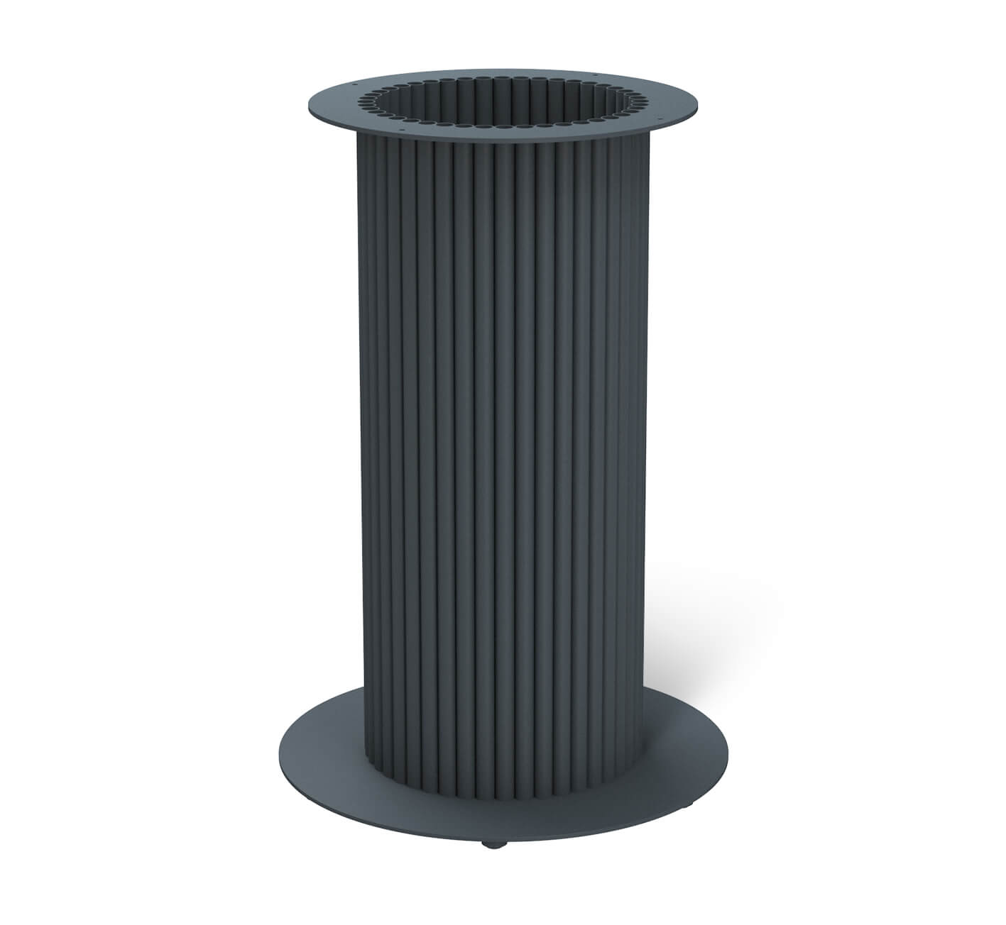 Надежная металлическая опора окрашена порошковой краской, устойчивой к механическому воздействию. Жесткость и прочность обеспечивается металлической трубой диаметром 76 мм, из которой выполнена стойка. Крепление к столешнице выполнено из металлического листа, толщиной 5 мм. Внизу лежит утяжеленное основание в форме круга.