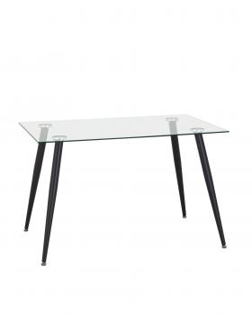 Обеденный стол со стеклянной столешницей. Закаленное стекло выдерживает большие нагрузки, обладает высокой термоустойчивостью и прочностью. Стол украшают крепкие ножки, выполненные из металла, снаружи декорированы принтом под натуральной дерево, что смотрится очень гармонично.