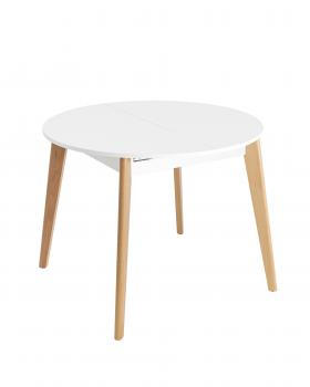 Ножки выполнены из массива бука, покрашены в белый цвет. Дополнительная вставка в цвет столешницы. Стол легко разложить, механизм раскрытия “бабочка”.