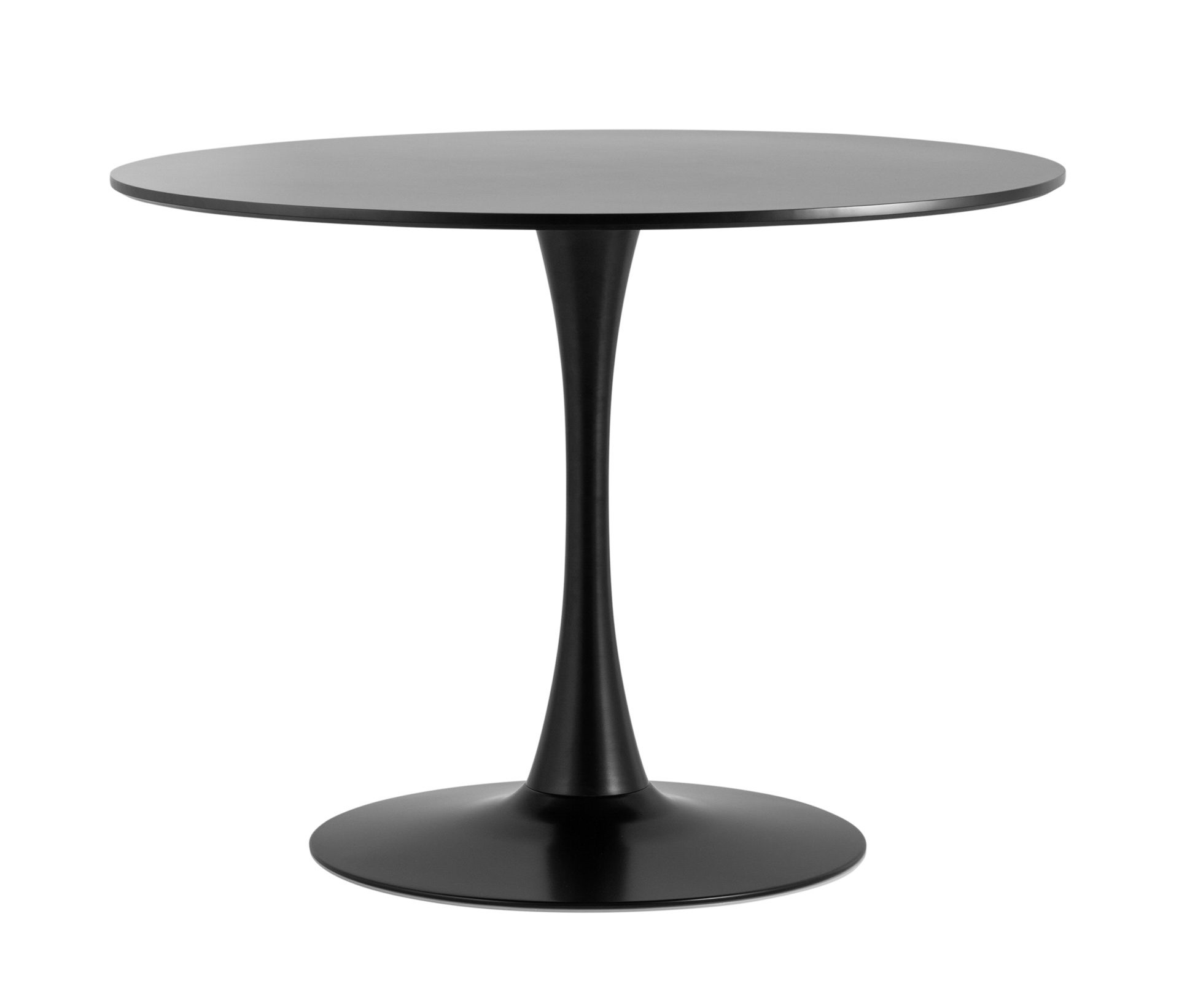 Стильная ножка изготовлена из металла, диаметр столешницы 90 см.