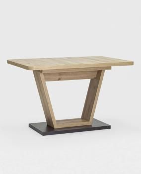 Удобный и стильный раздвижной стол в оттенке светлого дерева.