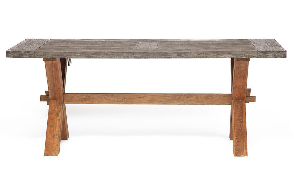 Деревянная столешница из массива тика, тонированная в серый цвет и обработанная тонким слоем прозрачного масла, зачаровывает благородством рисунка, изысканностью материала и красотой. Модель долговечна, прочна, надежна, не требует специального ухода. Стол относится к коллекции VERANDA.