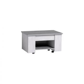 Журнальный столик в гостиной – предмет постоянного использования. Возможность трансформировать его в рабочий позволит сэкономить на покупке письменного стола и с удобством разместиться с ноутбуком дома. Стол из коллекции Леон шириной всего 900 мм. Он комплектуется колесными опорами, благодаря чему приобретает мобильность в передвижении. Столешница в декоре Ателье светлый изготовлена из ЛДСП толщиной 22 мм и облицована кромкой ПВХ 2 мм, что обеспечивает ее надежность и высокую износоустойчивость.