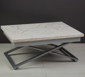 Стол-трансформер Levmar Accord D95/S59 Белый мрамор/Серебро