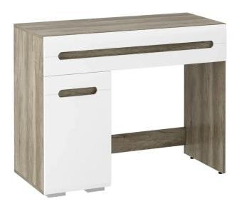 Модель выполнена в светлых оттенках: белый и дуб каньон, что позволяет легко интегрировать её в любой интерьер. Настенное зеркало из той же коллекции станет отличным дополнением, подчеркивающим элегантность стола.