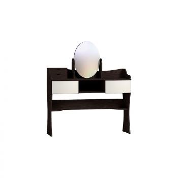 АМЕЛИ 15 Стол туалетный – новинка в линейке спальни «АМЕЛИ». Для размещения предметов ежедневного пользования, косметики и аксессуаров в будуарах больших спален отлично подойдет более просторный и вместительный 15 Стол туалетный. Модуль дополнен настольным поворотным зеркалом. Поворотное зеркало – очень практичный вариант. Одностороннее овальной формы зеркало с еврокромкой по периметру крепится сверху на столешнице, и его можно легко поворачивать в нужную сторону, что позволяет откорректировать направление света. Под столешницей предусмотрены специальные полочки округлой формы для высоких флакончиков и коробочек, например, для антистатика. Опоры стола с оригинальными вырезами выполнены из ЛДСП.
