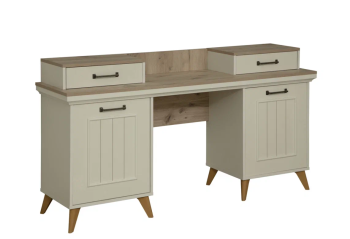 Стол туалетный 61.12 “Бэлла” в стиле Прованс. Столик оборудован 2-мя тумбами и 2-мя выдвижными ящиками. Изделие установлено на высокие пластиковые опоры. Направляющие ящика: Шариковые, полного выдвижения. Петли с доводчиком.