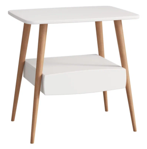 Современный журнальный столик с ящиком на высоких ножках дополнит интерьер гостиной или спальни.