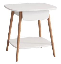 Современный журнальный столик с ящиком на высоких ножках дополнит интерьер гостиной или спальни.