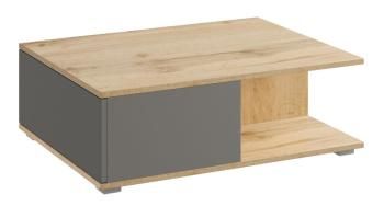 Стол журнальный Комфорт-S Виллитус М10 – корпус и фасады выполнены в стильных современных цветах «Графит» и «Дуб Вотан». Внутри можно размещать элементы декора и книги на удобных открытых полках. Фурнитура – петли с доводчиками, на лицевых торцах долговечная кромка 2мм.