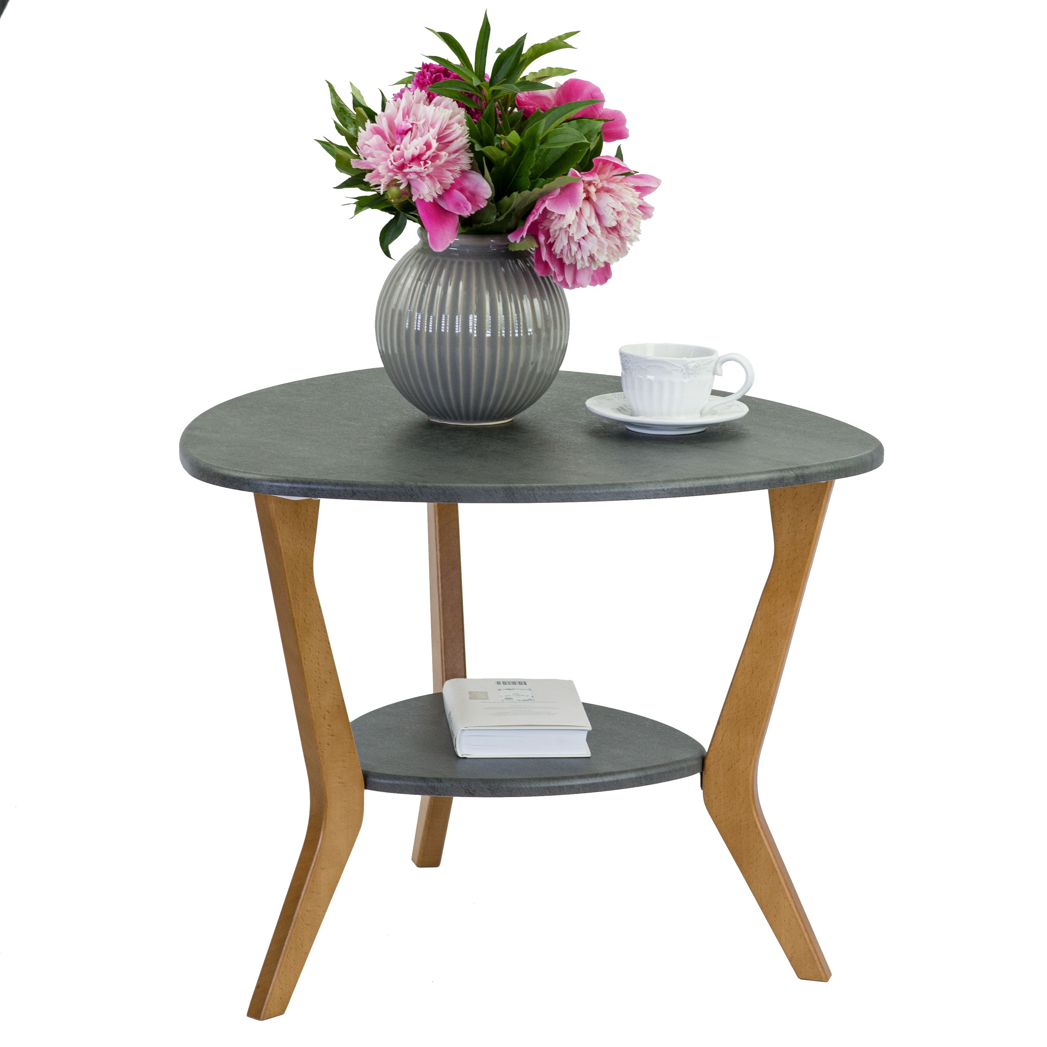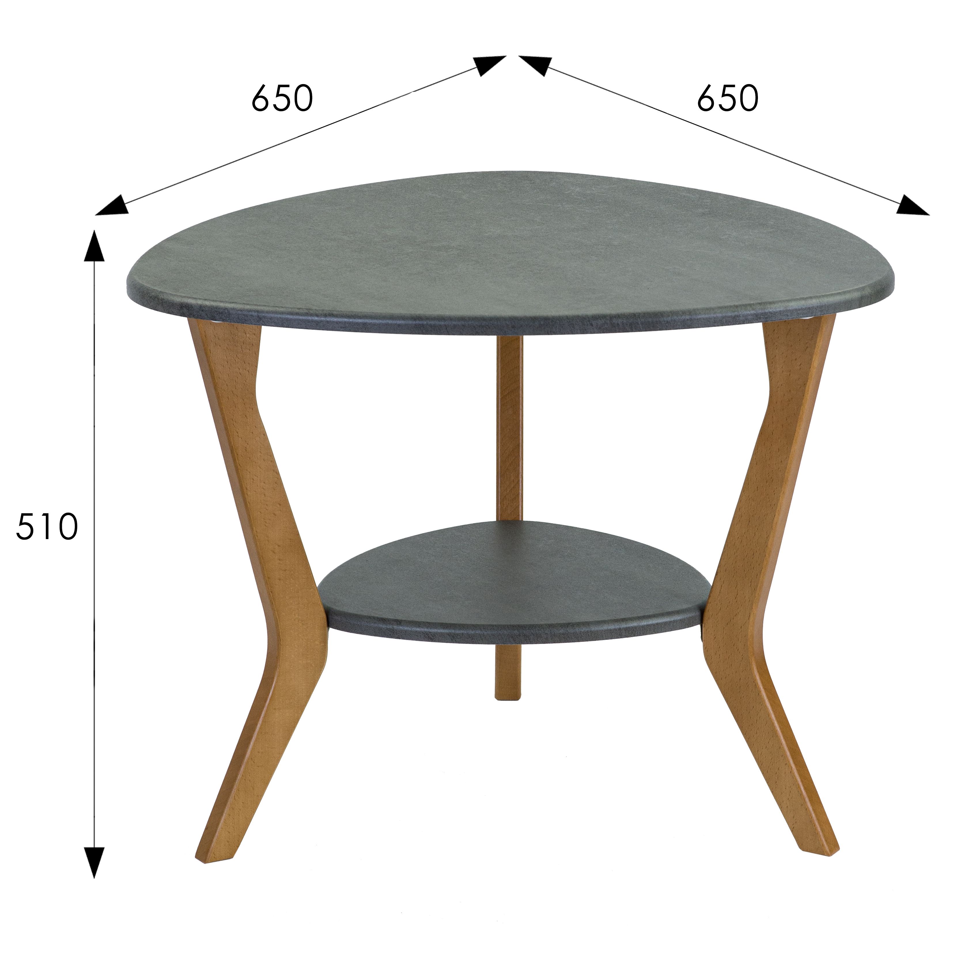 Оптимальные пропорции. Габариты стола (высота 51 см, ширина и глубина по 65 см в пределах формы) обеспечивают удобство использования рядом с диваном или креслом. Форма «мягкого треугольника» может быть особенно удобна для углового размещения или для создания нестандартной композиции.
