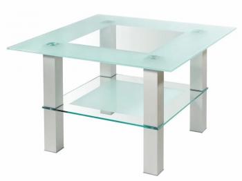 Журнальный столик Кристалл-1 – столик отлично подходящий для оформления офисных или других общественных помещений. Сочетание стекла и алюминия делает его универсальным, с точки зрения добавления этого предмета в уже существующий интерьер, в каком бы стиле и в каких бы цветах он не был решен. Столик чрезвычайно практичный и гигиеничный, за ним очень легко ухаживать, для этого достаточно иметь под рукой стандартное средство для чистки стекол. Тема строгих прямоугольных форм повторяется в этом столике во всем – и в форме и в рисунках на столешнице и полочке и даже в форме ножек квадратного сечения. Стол имеет проверенную конструкцию и долгий срок службы.