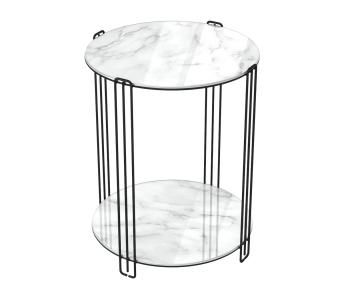 Столешницы из стекла смотрятся невесомо, благодаря толщине 5 мм. Декоративный рисунок имитирует натуральную текстуру мрамора. Продуманный дизайн ножек делает столик визуально легким и невесомым.