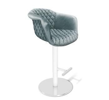 СТИЛЬНЫЙ ДИЗАЙН заключен в красиво очерченном вырезе внизу снинки сидения. Такой элемент придает готовому стулу воздушности и удобство в использовании. Каркас выполнен из металла с белой матовой краской и блестящим гальваническим хромом. Модель располагается на одной высокой ножке цилиндрической формы. Внизу она плавно переходит в основание, сделанное в виде круга.