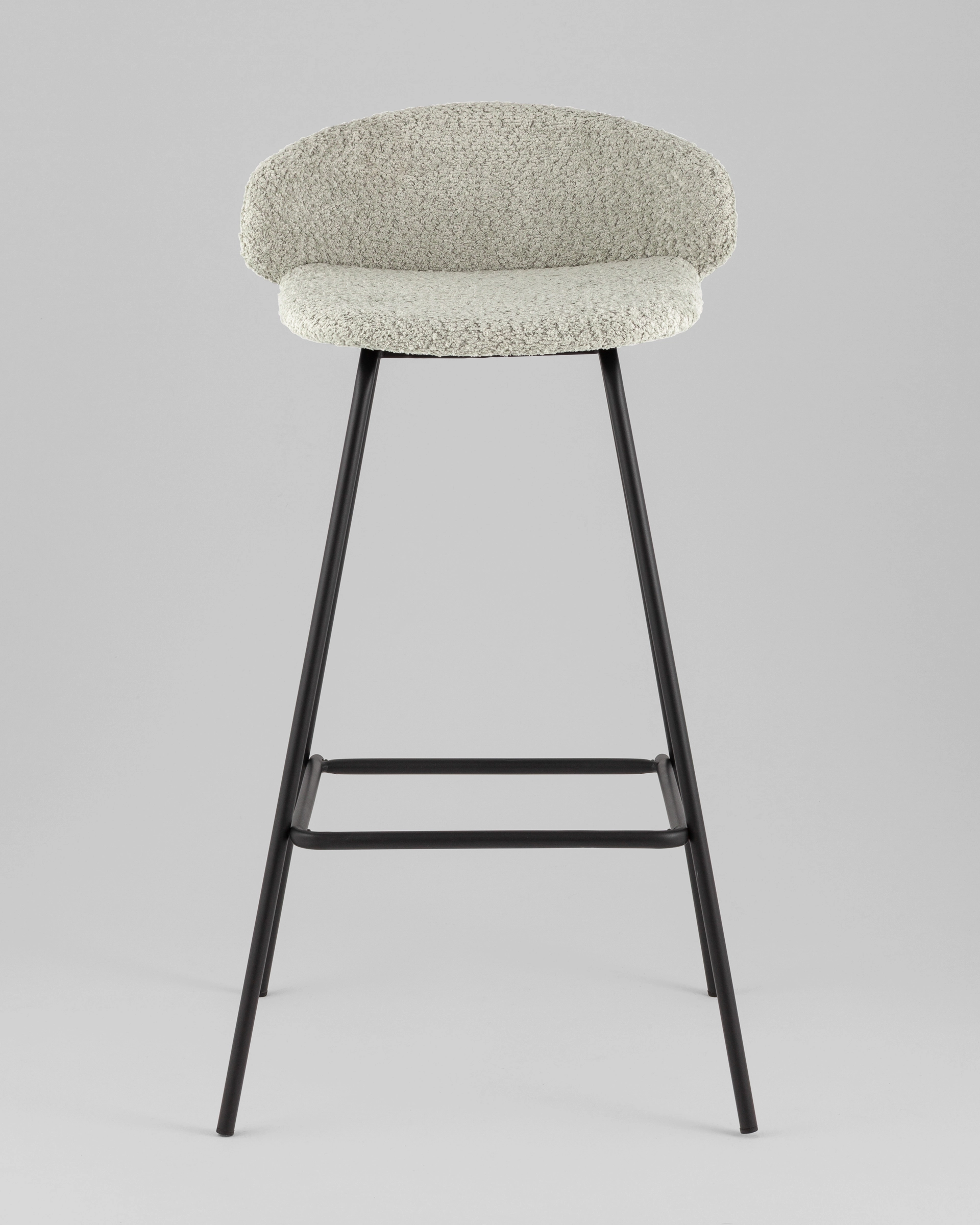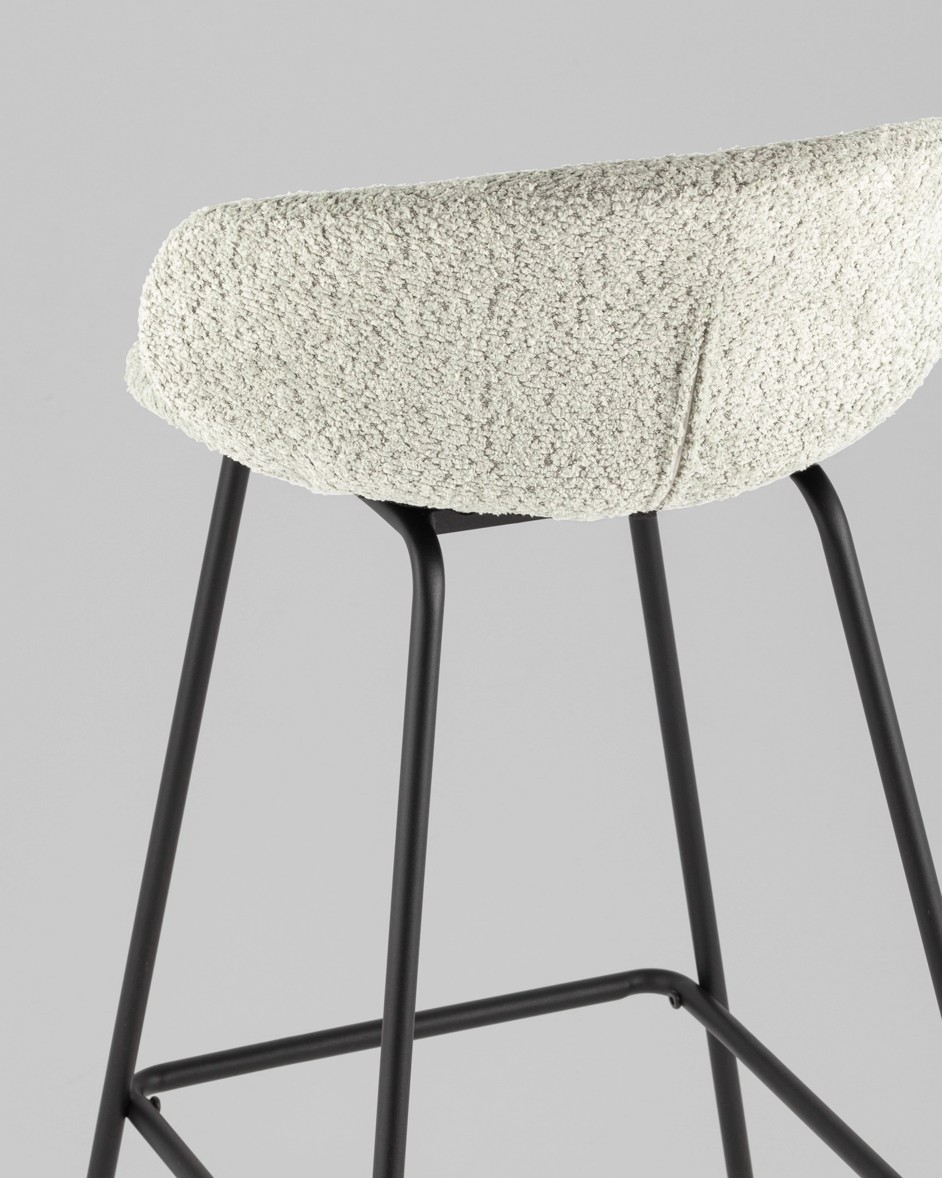 Габариты стула составляют 92 см в высоту, 49 см в ширину и 48 см в глубину. Ширина сиденья — 40 см, а глубина — 36 см, что обеспечивает комфортную посадку. Высота сиденья составляет 76 см, что делает его подходящим для высоких стоек. Обивка из букле в кофейном цвете добавляет изделию уют и стиль.