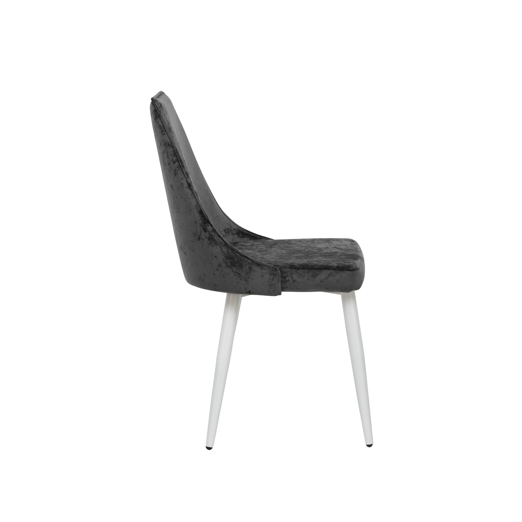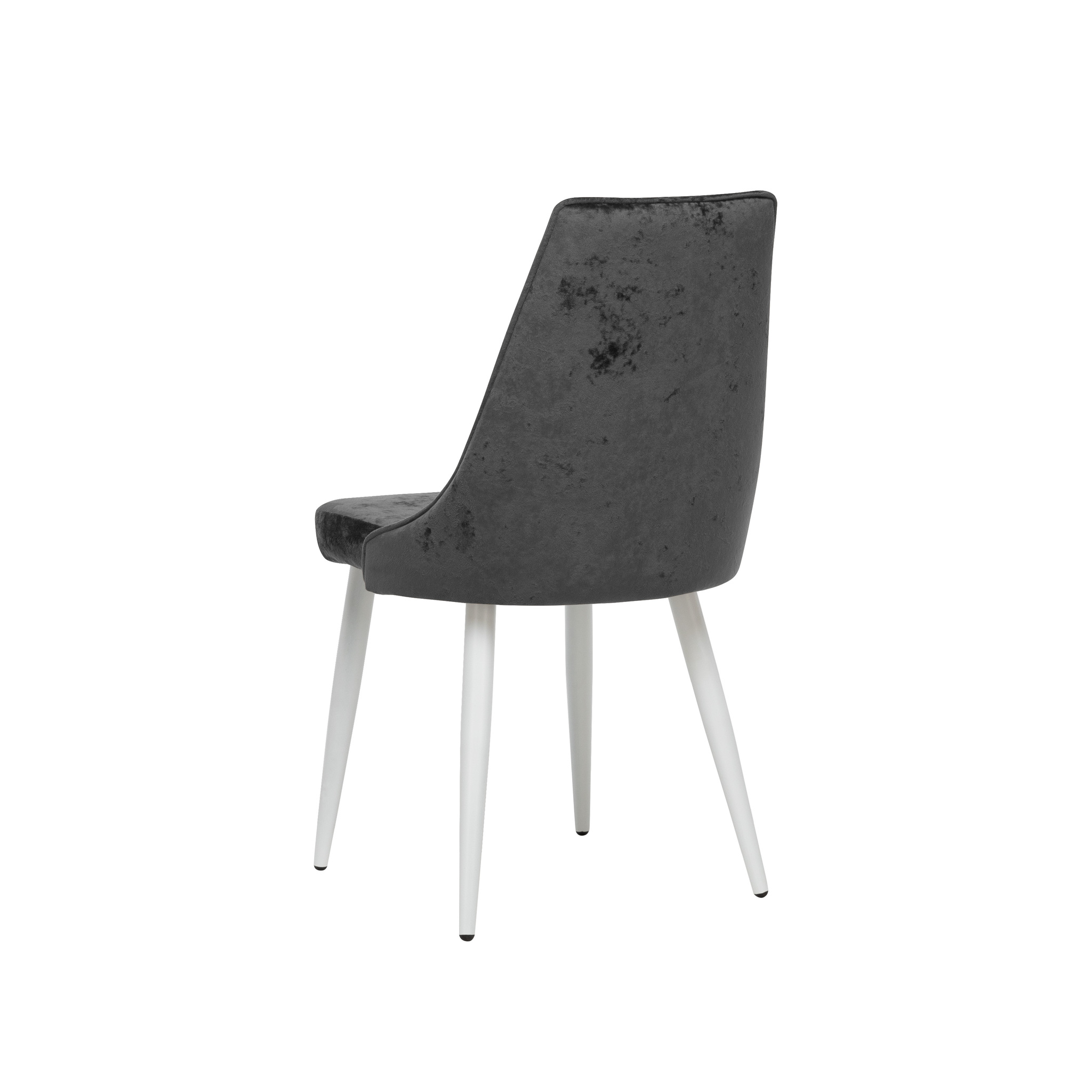 Каркас стула изготовлен из прочного металла, устойчивого к коррозии и выдерживающего значительные нагрузки. Ножки оснащены пластиковыми заглушками, защищающими пол от царапин и повреждений. Обивка из премиального велюра с эффектом «морозного узора» придаёт стулу изысканность и делает его ярким акцентом в интерьере.