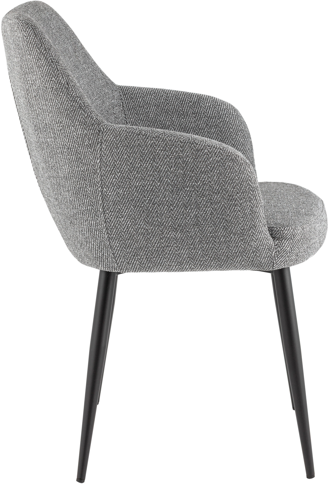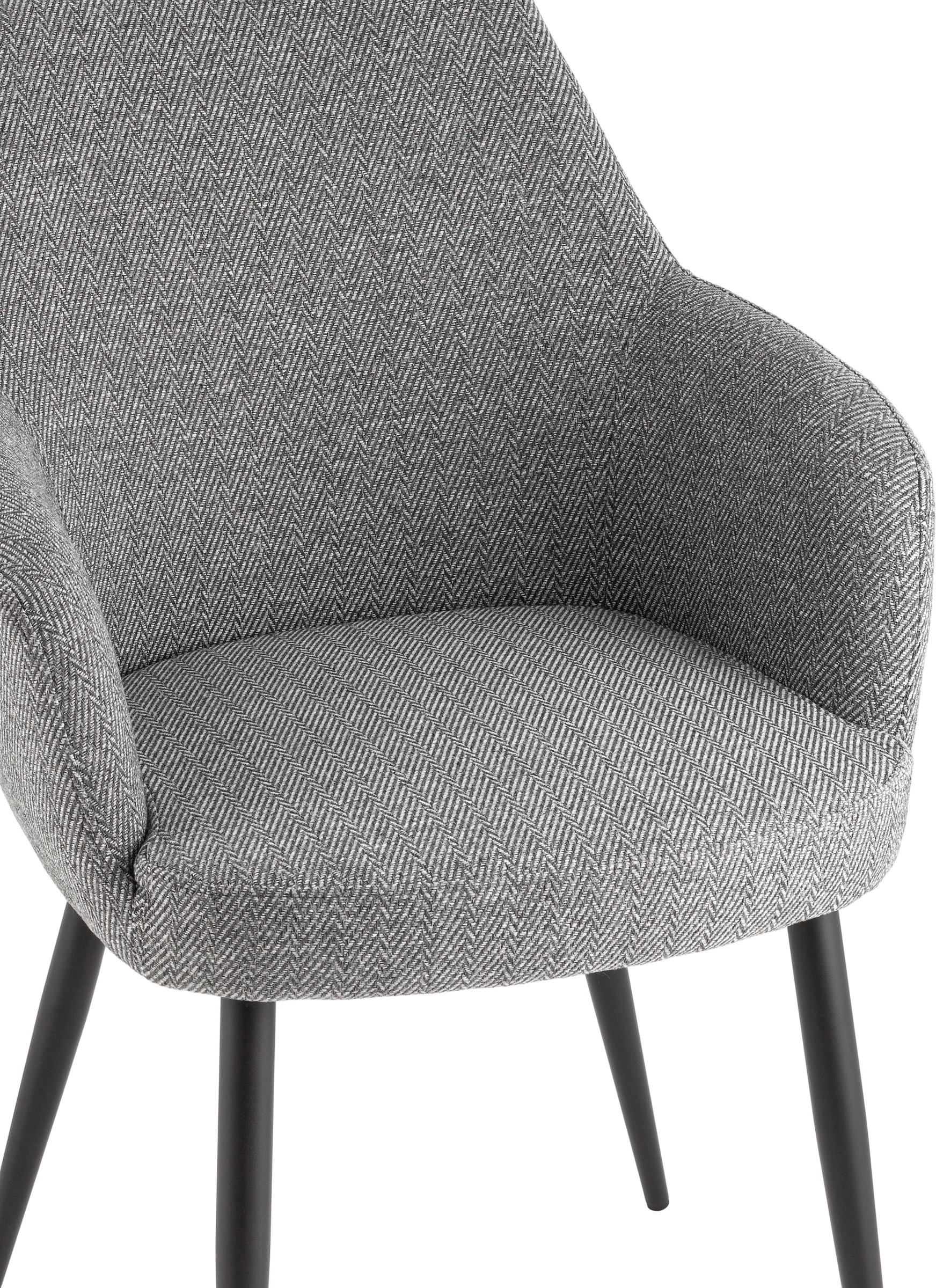Обеденный стул Katys — это удачное сочетание изящных форм и комфорта. Его современный силуэт с округлой спинкой и подлокотниками обеспечивает удобную посадку, а выразительная текстура ткани “ёлочка” добавляет интерьеру индивидуальности. Модель смотрится эффектно как самостоятельно, так и в составе обеденной группы.