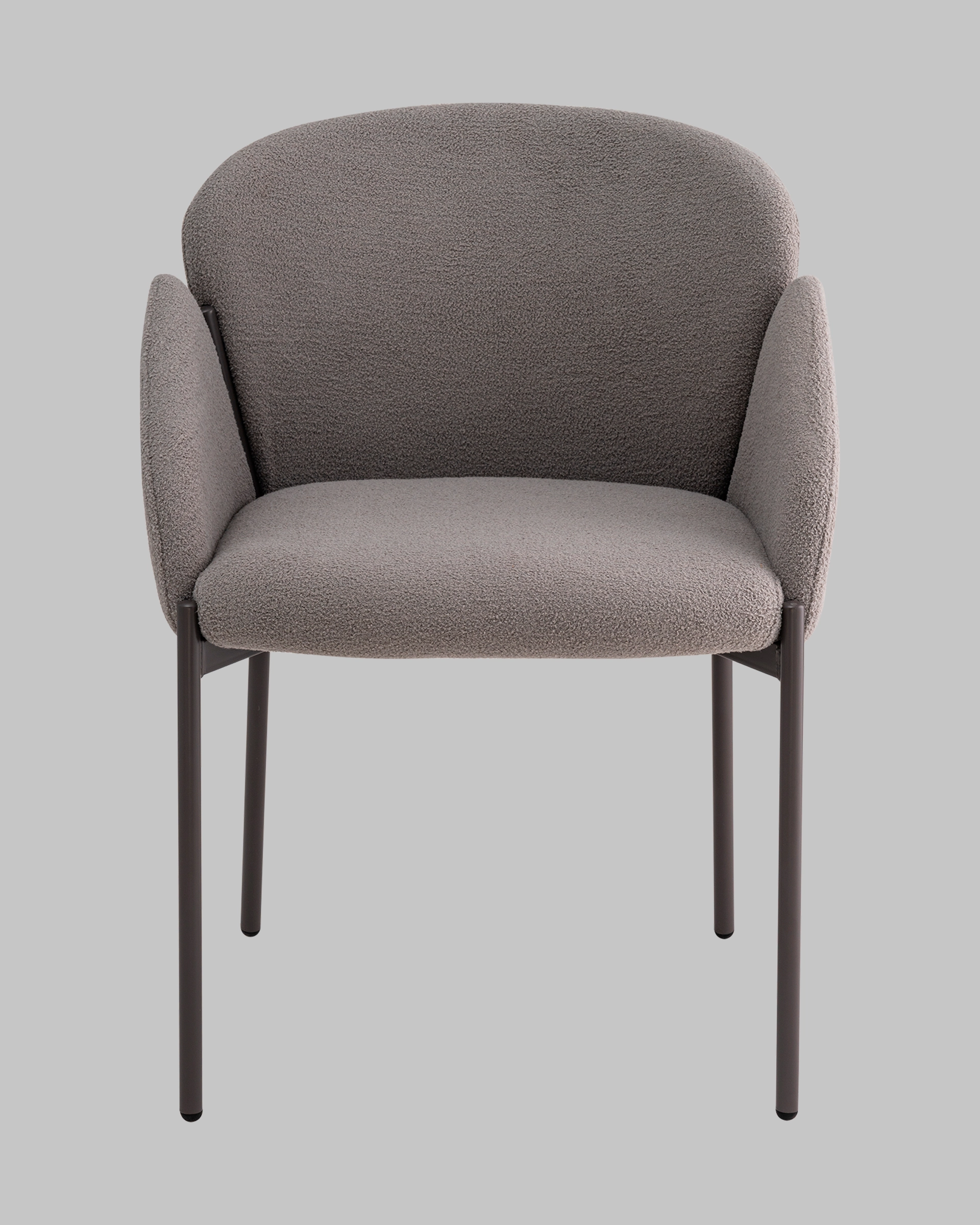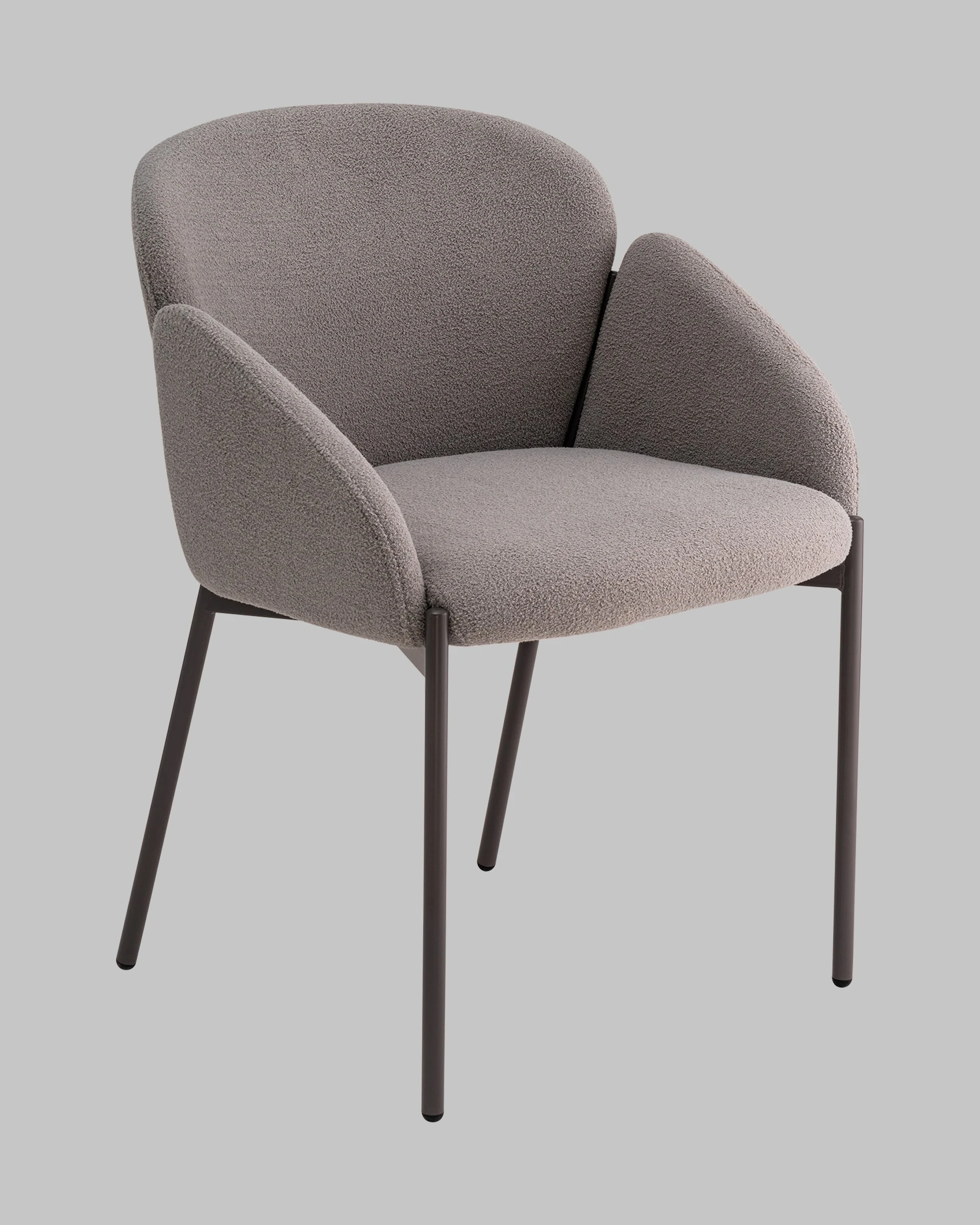 Габариты стула составляют 77 см в высоту, 60 см в ширину и 57 см в глубину. Ширина сиденья — 48 см, а глубина — 44 см, что обеспечивает удобную посадку. Высота сиденья составляет 47,5 см, что делает его подходящим для стандартных столов. Обивка из ткани букле в светло-коричневом цвете придаёт изделию стильный вид и приятна на ощупь.