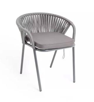 Оплетка выполнена в ручную современным материалом – плоским роупом. Это эластичные синтетические веревки из высокопрочных полиэфирных волокон, предназанченные для изготовления мебели. Цвет оплетки – серый.