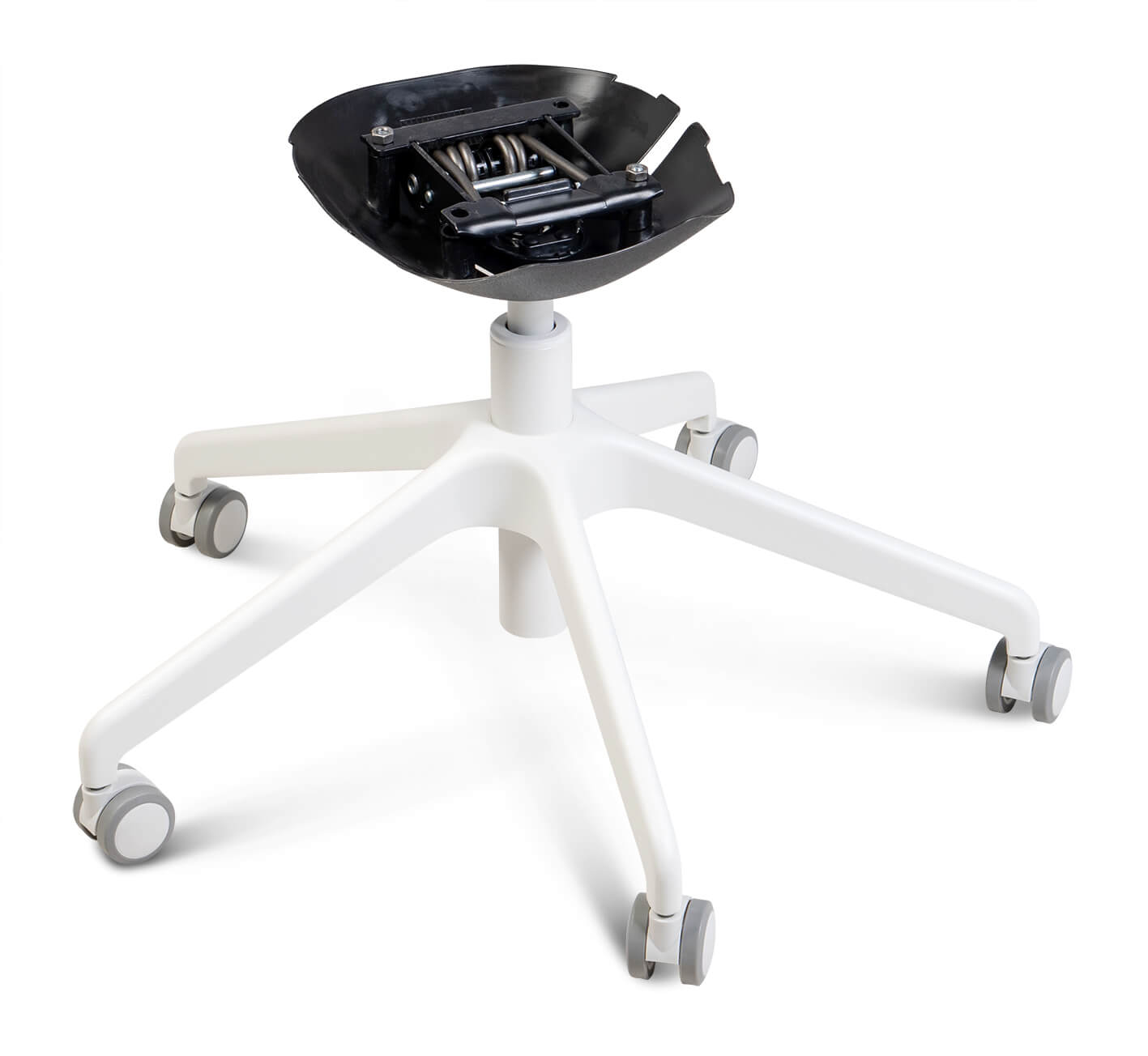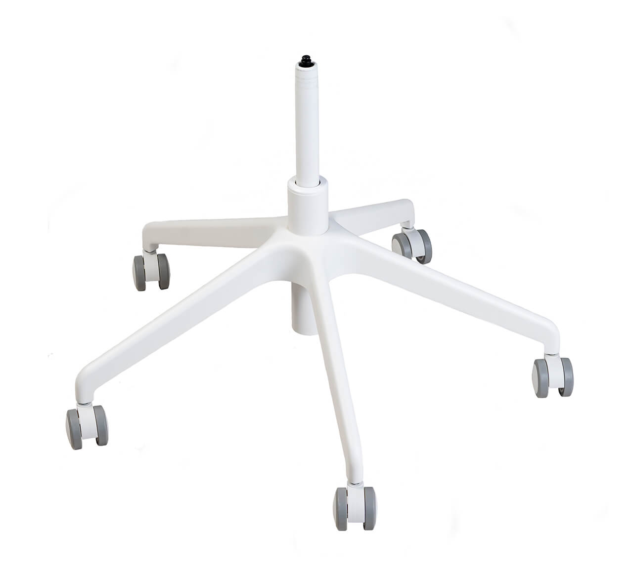 Широкая площадь опоры и пять лучей делают каркас устойчивым и надежным. Каркас выполнен из алюминия, что придает ему особую прочность, и в тоже время легкость. Покрыт порошковой краской, устойчивой к механическим повреждениям. Колеса выполнены из полипропилена и имеют резиновую основу, которая отличается устойчивой упругостью и выдерживает продолжительные нагрузки.
