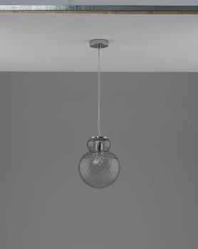 Дизайн светильника отличается округлой формой, напоминающей винтажный сосуд или хрустальный шар. Фактурная поверхность стекла мягко рассеивает свет, создавая уютную атмосферу. Регулируемая высота от 20 до 120 см позволяет адаптировать освещение под любые интерьерные решения.