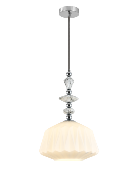 Купить в Москве подвесной светильник Moderli V11172-1P Charm — это элегантное решение для интерьера в восточном стиле. Плафон выполнен из матового белого стекла с геометрическими гранями, мягко пропускающего и рассеивающего свет. Каркас из хромированного металла и декоративные элементы у основания добавляют модели изящества и утонченности.