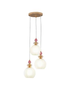 Купить в Москве подвесной светильник Moderli V11402-3P Tamina — это стильное решение для создания теплой и уютной атмосферы. Его три круглых плафона из матового стекла мягко рассеивают свет, наполняя комнату комфортом. Декоративные элементы из розового и коричневого стекла на металлической арматуре придают изделию восточный шарм и оригинальность. Глянцевая золотая отделка добавляет изящества и выделяет модель среди аналогов.