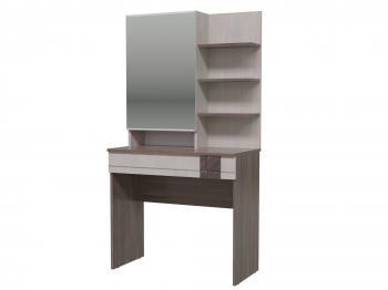 Трюмо Презент из набора модульной спальни. Незаменимый и практичный атрибут мебели, приносящий радость для каждой женщины. Туалетный стол с зеркалом оснащен выдвижным ящиком и полками для хранения необходимых вещей.