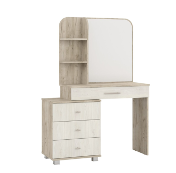 Туалетлый столик с зеркалом, открытыми полочками и 4-мя выдвижными ящиками.