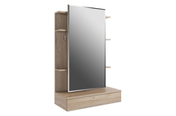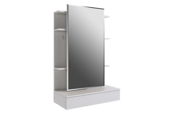 - Практичная конструкция – подвижное зеркало открывает доступ к удобным полкам и крючкам для хранения косметики и аксессуаров