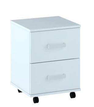 Лицевая фурнитура выполнена из первичного АБС пластика белого цвета и имеет ультраглянцевую поверхность. Шариковые направляющие полного выдвижения обеспечивают плавный бесшумный ход выдвижных ящиков. Колесная опора выкатной тумбочки диаметром 40 мм на металлическом каркасе с пластиковым покрытием обеспечивают длительную эксплуатацию и передвижение.