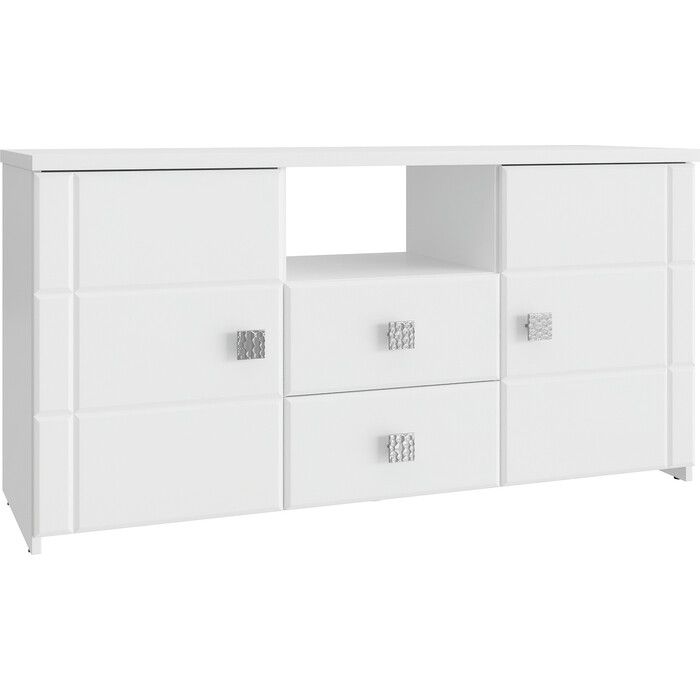 Тумба Изабель ИЗ-53К для ценителей современного дизайна. Наполнение тумбы: два выдвижных ящика, ниша для аппаратуры или книг и два закрытых отделения с полками. Столешница выполнена из ЛДСП 25 мм, дно ящика двп 3 мм. Фурнитура: металлизированные квадратные ручки, телескопические направляющие полного выдвижения, петли с доводчиками.