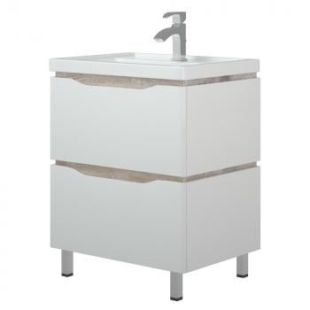 Тумба “Бостон” оснащена 2 выдвижными ящиками на направляющих скрытого монтажа с доводчиками. Верхний ящик высотой 80 мм с выпилом под коммуникации, нижний высотой 130 мм. Фасады не имеют ручек, однако удобный конструктив тумбы позволяет очень комфортно открывать фасады. Особенностью тумбы являеется наличие “двойных боковин”. Внутренние боковины из ЛДСП, внешние из ЛДСП, покрашенного в глянцевую эмаль. У тумбы 4 металлические опоры. Фасады – МДФ с белой глянцевой эмалью.