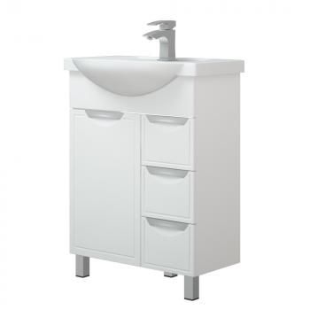 У тумбы Монро 65 Z3 1 дверца и 3 выдвижных ящика. На дверях – петли с доводчиками. Высота ящиков 110 мм. У тумбы 2 металлические опоры, 1 пластиковая. Коромысло и фасады – МДФ в плёнке.