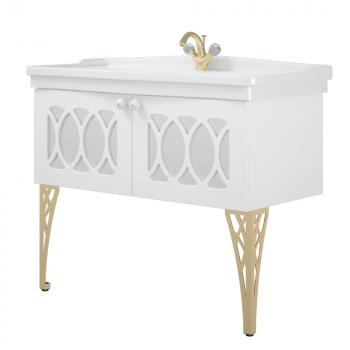 Роскошь версальского дворца у Вас дома! У тумбы 2 распашные двери с фрезеровкой, позади фрезеровки зеркало. Зеркало защищено противоосколочной пленкой. Возможно 2 исполнения тумбы – с опорами и без. Независимо от этого, тумба оснащена подвесами Scarpi для крепления к стене.Вся тумба покрашена в матовую белую эмаль.