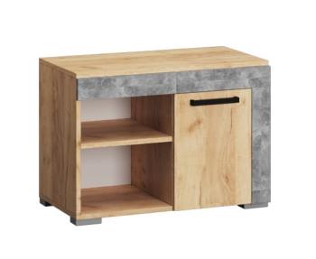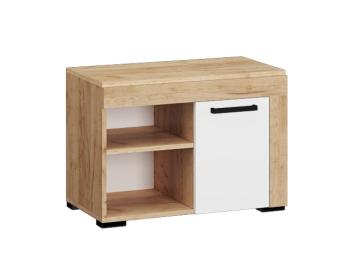 Ищете удобную и стильную тумбу для прихожей? Обратите внимание на тумбу из коллекции Галант. Модуль выполнен в том же декоре, что и остальная мебель – дуб крафт золотой/белый. За дверцей скрывается полка – на ней Вы можете разместить обувь и вещи, которые лучше спрятать от лишних глаз. Черные ручки и ножки геометрической формы удобны в использовании и добавляют модулю стиля.