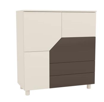 Современная тумба – комод 6-56022 с 3-мя распашными дверцами, откидной дверцей и 2-мя выдвижными ящиками. За дверцами скрыты полки , ящики на направляющих полного выдвижения. Механизм открывания и закрывания Push-to-Open – нажатием.