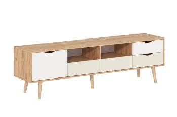 Современная тумба – комод 6-56030 с 1-ой распашной дверцей, открытыми полками и 4-мя выдвижными ящиками. За дверцей скрыта полка , ящики на направляющих полного выдвижения. Часть ящиков на механизме открывания и закрывания Push-to-Open – нажатием. Изделие установлено на высокие опоры.