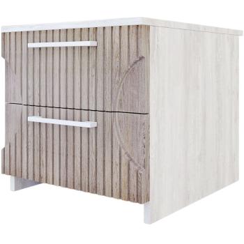 Изготовленная из ЛДСП, тумба отличается высокой прочностью и долговечностью. Фасады выполнены из МДФ с ПВХ покрытием, что придаёт ей современный вид. Тумба оснащена двумя ящиками, которые удобно открываются благодаря направляющим скрытого монтажа.