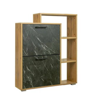 Оригинальная тумба под обувь “Фиеста-10” с 2-мя откидными секциями под обувь и открытыми полками. Сборка изделия универсальная, собирается на правую и левую стороны.