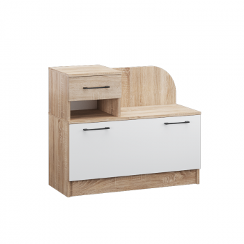 Тумба под обувь с местом для хранения обуви, ящиком, открытой нишей и сиденьем.