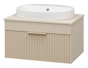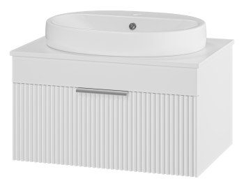 Тумба под раковину Misty/Brevita Enfida 70 (подвесная) — это стильная и практичная модель, которая придаст вашей ванной комнате утонченность и современный вид. Особенность этой тумбы — эффектные фасады с волнистой фрезеровкой, которые добавляют мебели элегантности и динамичности. Выдвижной ящик, оснащенный доводчиками на направляющих скрытого монтажа, плавно и бесшумно закрывается, обеспечивая комфорт при использовании.