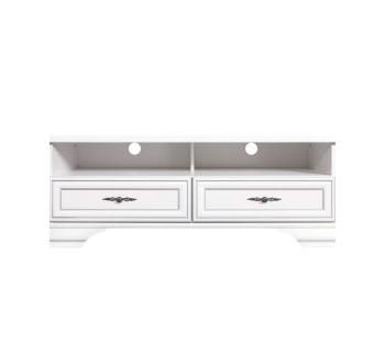 Длинная, невысокая (47 см), функциональная тумба под ТВ займет свое место в гостиной или спальне, сделав ее уютной и красивой. Углубления под аппаратуру имеют отверстия для проводов на задней стенке, чтобы вся композиция выглядела эстетично и привлекательно. В выдвижных ящиках удобно хранить сопутствующие аксессуары или журналы.