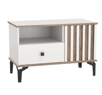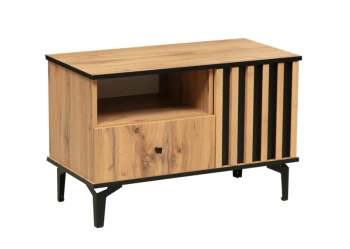 Тумба под ТВ из серии Либерти с открытой полкой, выдвижным ящиком и распашной дверцей.